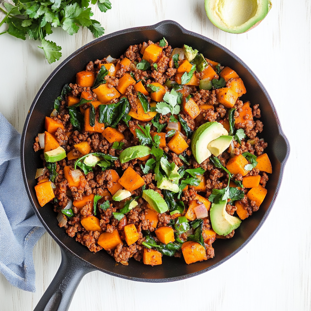 Delicious Healthy Ground Beef & Sweet Potato Skillet Recipe