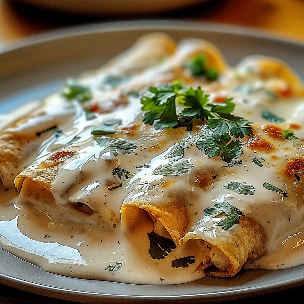 Irresistible Chicken Enchiladas with Sour Cream White Sauce