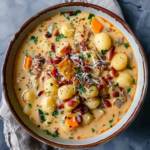 Bacon Cheddar Gnocchi Soup is a creamy, comforting dish that combines soft potato gnocchi with crispy bacon, rich cheddar cheese, and vegetables. This delicious soup is perfect for cold weather or any time you crave a hearty meal. The flavors meld beautifully, creating a satisfying bowl that warms both body and soul. It’s an easy recipe that can be made in under 30 minutes, making it ideal for busy weeknights.