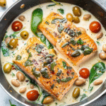 Creamy Tuscan Salmon is a delightful dish that effortlessly brings the flavors of Italy to your dinner table. Tender salmon fillets are enveloped in a rich, velvety sauce made from heavy cream, sun-dried tomatoes, and fresh spinach. This quick and easy recipe is perfect for impressing guests at dinner parties or treating yourself to a comforting meal at home. With vibrant colors and mouthwatering flavors, each bite is an experience worth savoring.
