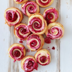 Raspberry Palmiers are made from puff pastry dough filled with raspberry jam or preserves. The dough is rolled and folded multiple times to create layers that bake into crisp, flaky pastries. You can also use store-bought puff pastry, which saves time while still delivering delicious results.
